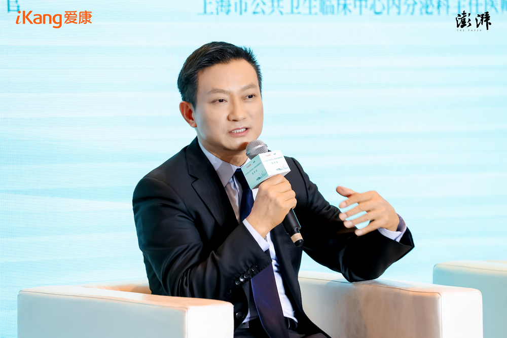 发布会现场,上海市卫生健康委员会健康促进处处长王彤,上海市社会医疗机构协会会长闫东方,上海市社会医疗机构协会副会长钟菊华,上海市长宁区社会医疗机构协会会长乔晓洪,复旦大学附属华山医院放射科主任医师姚振威,上海交通大学附属胸科医院呼吸内科主任医师施春雷,上海市公共卫生临床中心内分泌科主任医师赵晓龙,西门子医疗诊断业务实验室解决方案亚太地区执行副总裁林日升,西门子医疗中国区实验室解决方案负责人王皓峰,澎湃新闻党委副书记、副总编辑黄杨,澎湃新闻副总裁黄武锋,爱康集团首席执行官张黎刚等嘉宾出席。