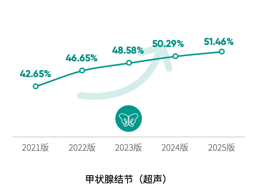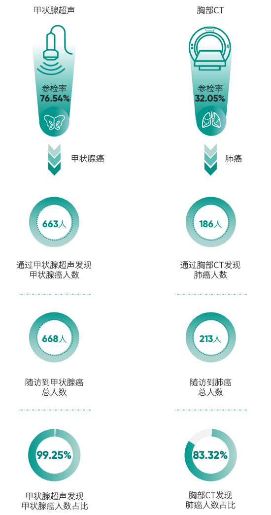 世界卫生组织国际癌症研究机构发布的数据显示:2022年中国甲状腺癌新发病例为466,118例,在中国癌症新发病例中排名第三位,第一位的则是肺癌②。但为何肺癌在体检中心的检出率却远远低于甲状腺癌?