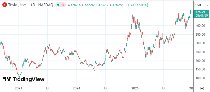 眼下,对投资者而言的现实是:特斯拉仍是唯一押注马斯克愿景的上市标的。短期内最大的风险在于估值,已经逼近危险区间。技术面看,该股接近“超买”水平;上一次在10月初达到类似状态后,股价在随后七个交易日内下跌了10%。