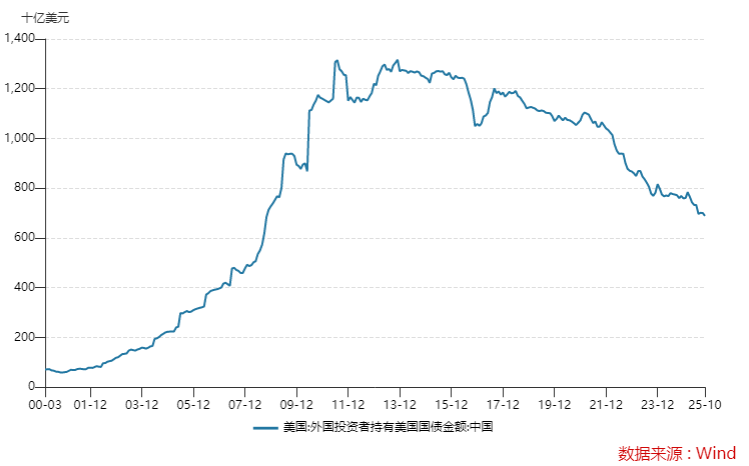 自2011年持仓规模达到逾1.3万亿美元的峰值以来,中国就一直在逐步减持美国国债,转向黄金等其他储备资产。