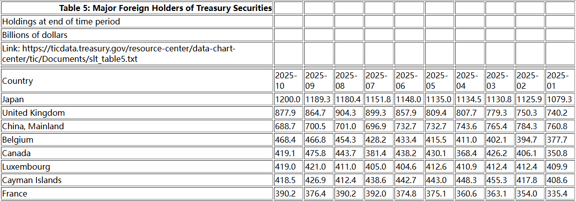 TIC报告显示,10月份海外投资者持有的美国国债规模连续第二个月下降,因美国历史上最长的政府停摆导致债市情绪恶化。