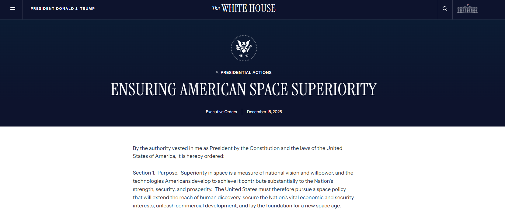 ①美东时间12月19日,特朗普签署行政命令,制定“美国优先”太空政策,确保美国在太空探索、安全和商业领域引领世界;
