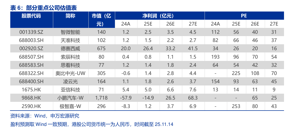申万宏源证券研报认为,投资角度,物理AI产业链已形成清晰的价值分布,各环节均有重要变化。产业链核心标的包括:1)控制器:智微智能、天准科技、德赛西威;2)数据供应:索辰科技、群核科技(拟上市)、思看科技、奥比中光-UW、凌云光;3)模型和算法:索辰科技;4)落地和应用:亚信科技;5)整机厂商:小鹏汽车-W、极智嘉-W。