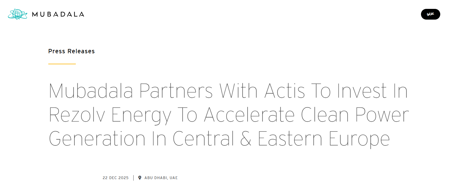 为进一步巩固其在欧洲的业务版图,穆巴达拉近期获得欧盟批准,与Actis共同控股Rezolv Energy,这一新动作凸显了该平台在欧盟可再生能源市场内的战略重要性。