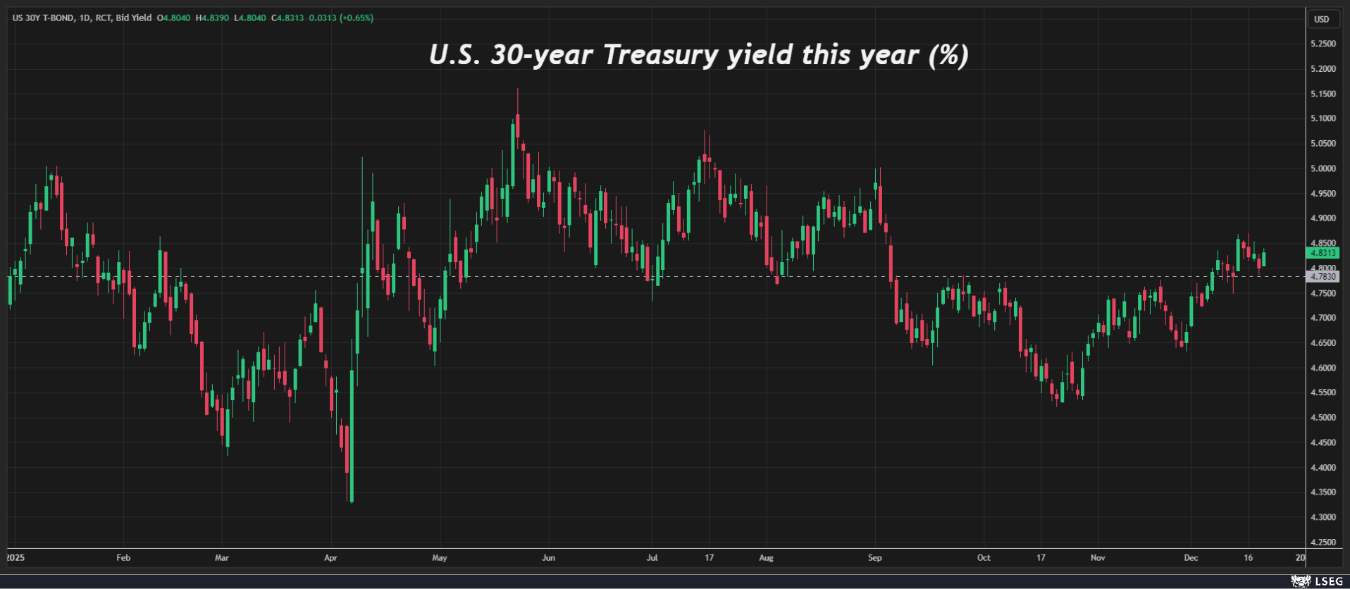 但回到现实,你会发现,30年期国债收益率在一年后仍维持在4.8%左右,与年初水平基本持平。