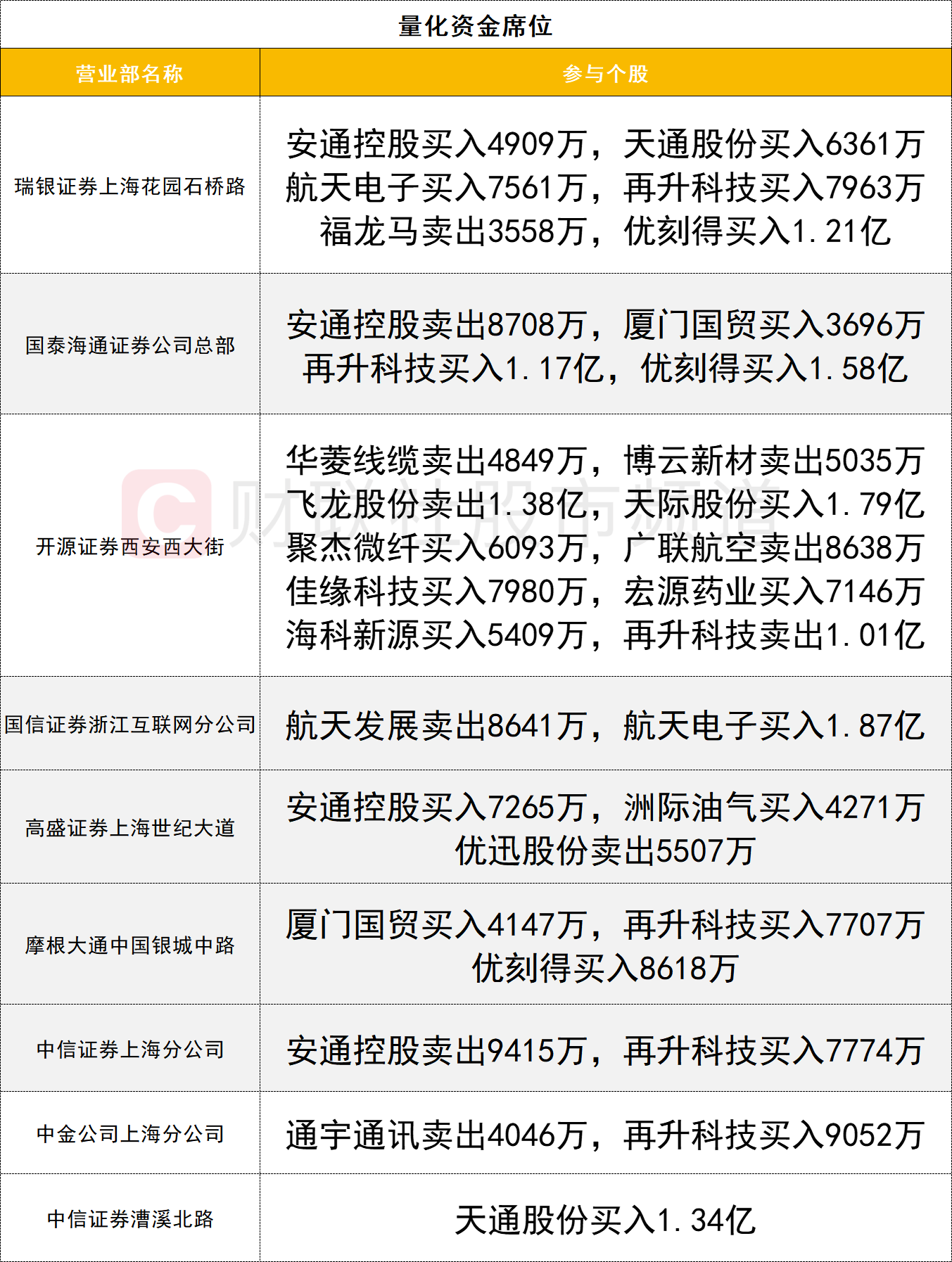 一线游资活跃度较高,存储芯片概念股德明利获两家游资(国泰海通证券上海江苏路、兴业证券深圳分公司)分别买入1.13亿、1.03亿。航天电子遭中国银河证券大连黄河路营业部大幅卖出3.45亿。