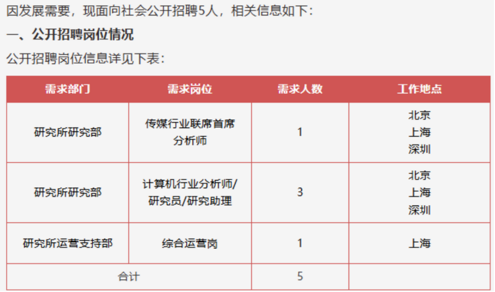 国盛研究所集中招聘多位分析师。此番招聘也在预期之内,尤其是招聘岗就包括传媒行业联席首席分析师,计算机行业分析师、研究员、研究助理等近期刚空缺的位置。记者了解到,研究所大量补充的团队成员即将入职,12月国盛研究所拟入职人数达12人以上,春节前后还将有包括医药、传媒在内的多位首席入职。