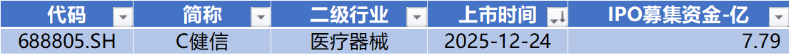 经wind查询,本周1家科创板公司IPO:健信超导,募集资金7.79亿。