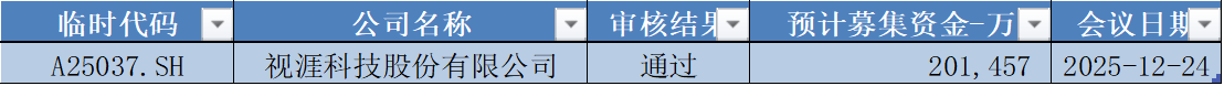 本周1家公司上会并获通过:视涯科技股份有限公司,预计募集金额20亿。