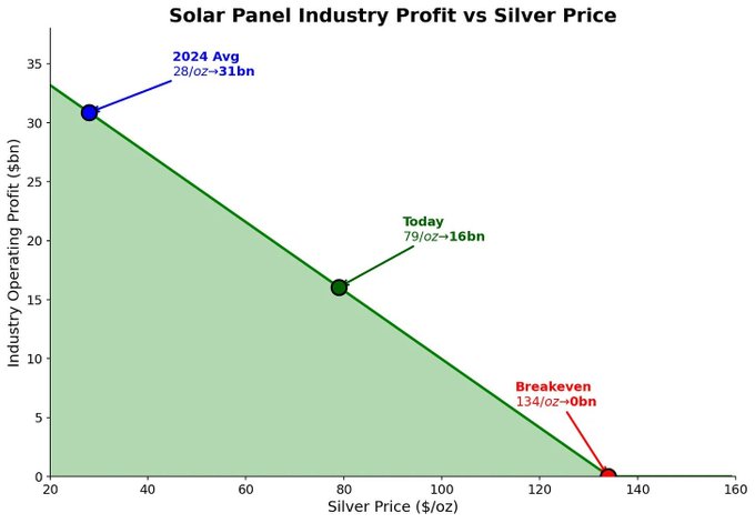 Mercx目前担心的是,白银价格达到每盎司134美元可能比大多数人预期的要快得多,该位置将是全球太阳能电池板行业营业利润降至零的水平。