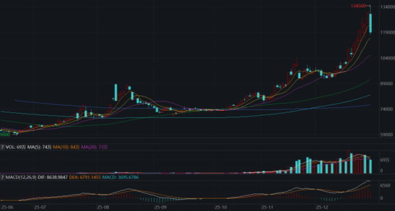 行情数据显示,碳酸锂期货主力合约在进入12月后加速上涨,连续突破10万元、11万元、12万元大关,截至上周末,月内已上涨超过35%。