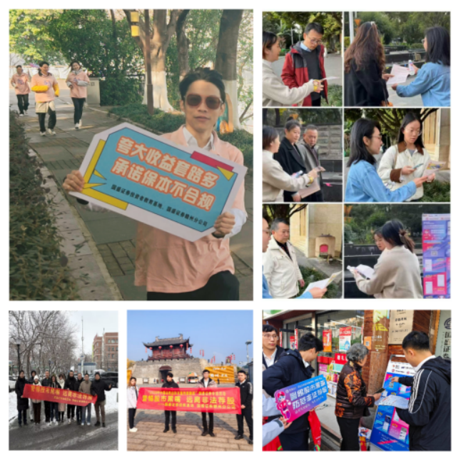 长期以来,国盛证券积极成为防非打非的践行者和宣传者,形成“总部统筹、基地示范、分支协同”的立体化防非宣传格局,联合地方政府、事业单位、社会团体等各方力量,集约资源、发挥合力,线下开展走进社区、走进商圈、走进景区、走进高校、走进企业以及其他各种形式的户外活动等,精准对接各群体,线上携手中国交通广播FM107.5打造《“非”说不可》防非主题电台访谈节目、开展防非有奖知识竞答等,还制作《包拯断案》《防非大盛》《查阅防非秘籍 投资不迷路》等系列投教产品,生动揭露非法证券期货活动的展现形式,引导投资者树立理性投资理念,进一步压缩非法活动空间,向社会大众充分展示金融行业风采、传递金融正能量。