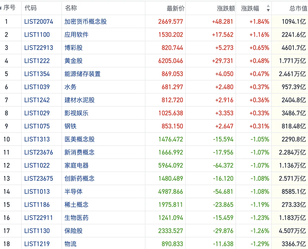上涨的板块中,航空、影视等受假期旺季带动连续走强。以铜、铝为首的有色板块继续强势。此外,部分AI应用概念股延续活跃表现。