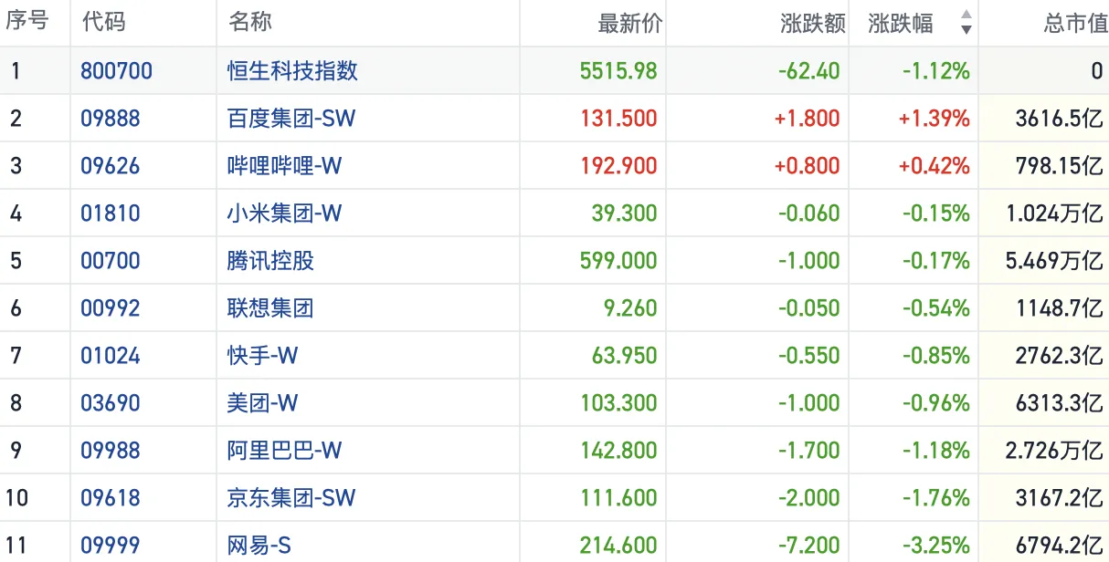 盘面上,今日大型科网股再度低迷,京东、快手、阿里巴巴、小米、腾讯均下跌。