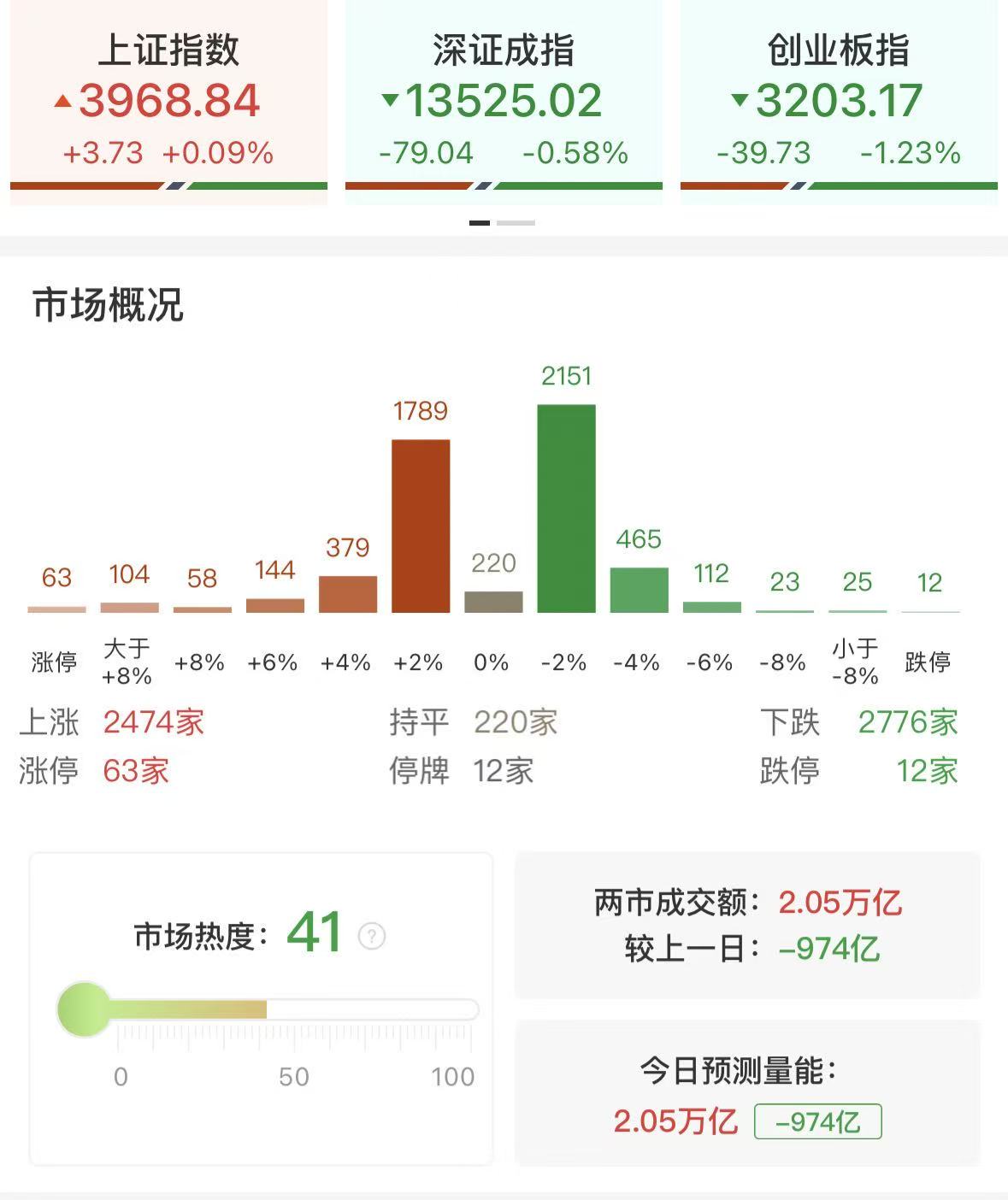 财联社12月31日讯,市场震荡分化,沪指窄幅震荡小幅收红,创业板指跌超1%。沪深两市成交额2.05万亿,较上一个交易日缩量974亿。盘面上,市场热点快速轮动,个股涨跌互现。从板块来看,商业航天概念再度活跃,雷科防务3连板,顺灏股份、中国卫星等涨停。AI应用端延续强势,万事利、蓝色光标等多股涨停。下跌方面,半导体、算力硬件方向陷入调整,此外,鹭燕医药等高位股盘中跳水。截至收盘,沪指涨0.09%,深成指跌0.58%,创业板指跌1.23%。