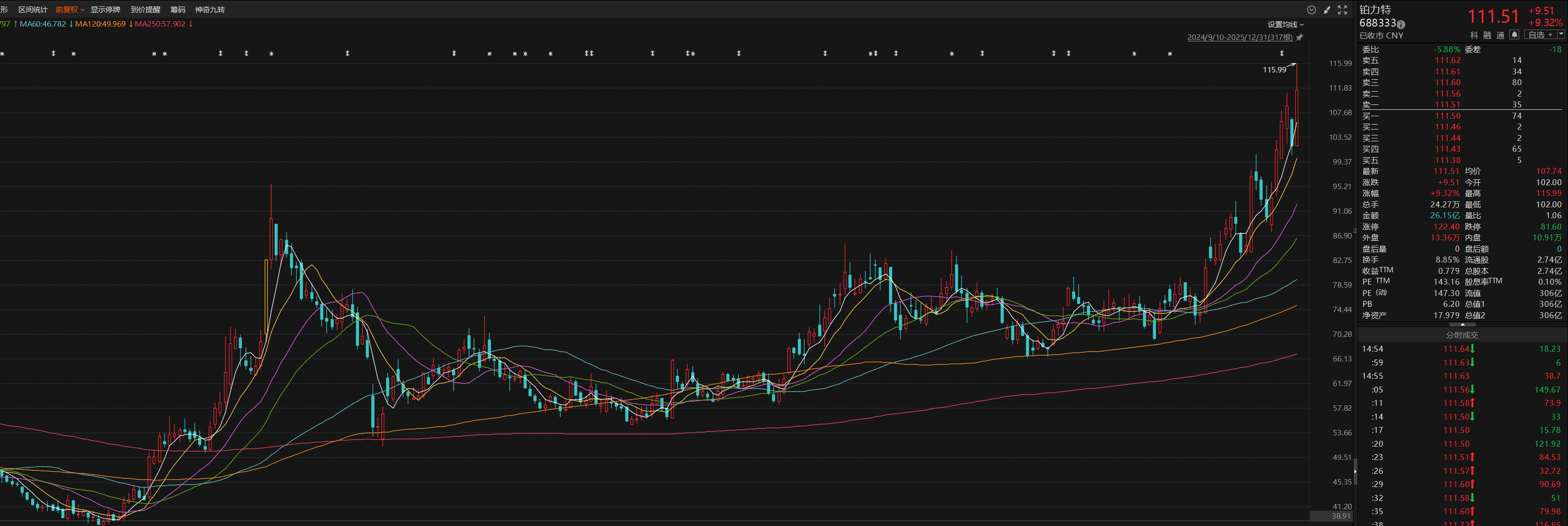 二级市场方面,铂力特盘中触及115.99元/股,创下历史新高,拉长时间来看,其股价自1月低点迄今累计最大涨幅208%。