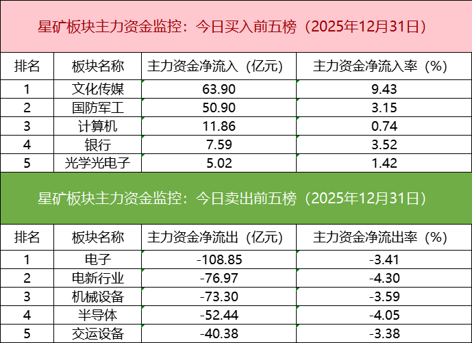 从主力板块资金监控数据来看,文化传媒板块主力资金净流入居首。