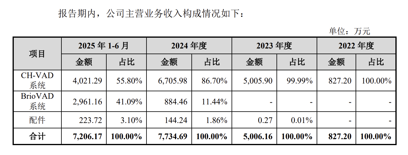 另值得一提的是,《科创板日报》记者从同心医疗方面获悉,公司另外一款产品BrioVAD虽尚未获得美国FDA批准上市,但其获批的临床试验已获得美国医保体系覆盖,平均每例支持约22万美元,这也意味着公司在临床试验阶段即可实现收入。今年上半年,该项收入贡献 2961.16 万元,在主营业务收入中的占比达 41.09%。