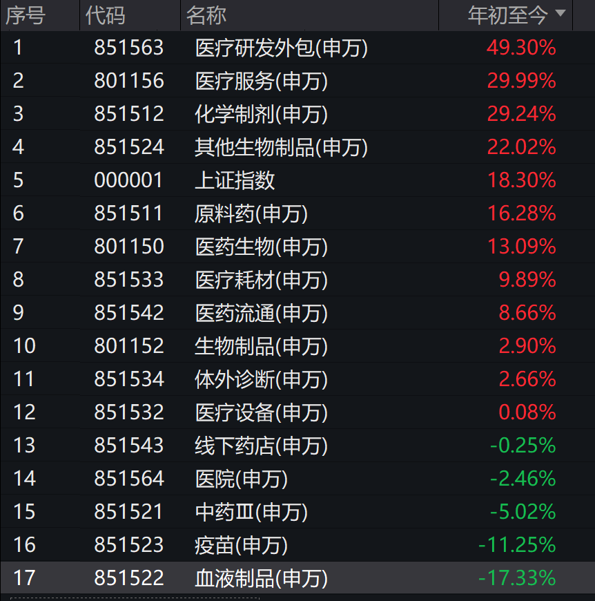 “但与创新药产业链紧密相关的CXO(医药外包)板块,因直接受益于创新药研发与海外BD交易的活跃,成为年内A股医药表现相对突出的细分领域。”他说。