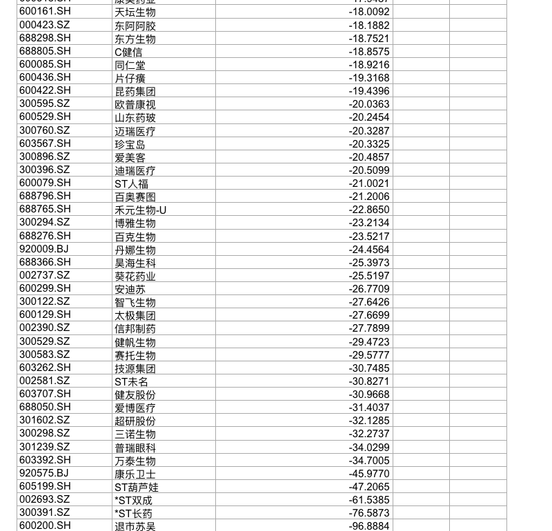 此外,在2025年A股涨幅靠后的医药个股中,还出现了多家眼科与医美公司,例如欧普康视、普瑞眼科、爱博医疗,以及爱美客、昊海生科等。这进一步反映出,今年具有明显消费医疗属性的细分赛道普遍面临压力。