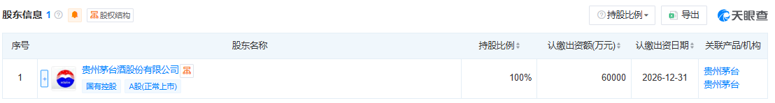 股东信息显示,该公司由贵州茅台全资持股。