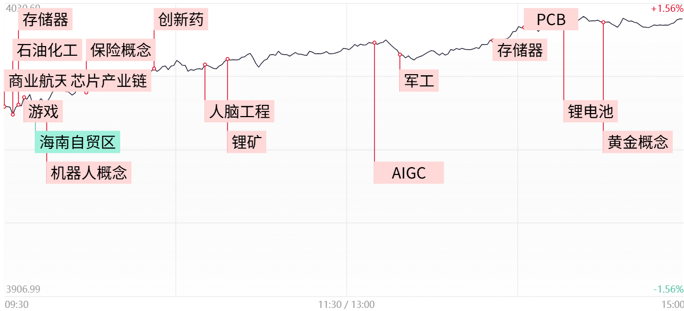今日市场高开高走,沪指12连阳重新站上4000点,深成指与创业板指双双涨超2%,两市成交额也放大至2.5万亿之上,随着市场再现“价涨量增”态势,后市或依旧值得期待,只要不有效跌破5日线,短线仍具冲高动能。从盘面维度来看,今日热点轮番活跃态势,脑机接口、芯片产业链、AI应用、商业航天等热门赛道均表现亮眼。后续是否存在足够的资金承接仍是值得关注的重点,若增量资金能够持续涌入,各热点仍有望维持普涨之势,反之一旦量能再度萎缩,市场或将再度面临分化,届时热门题材间的轮动节奏便是关注的重点。