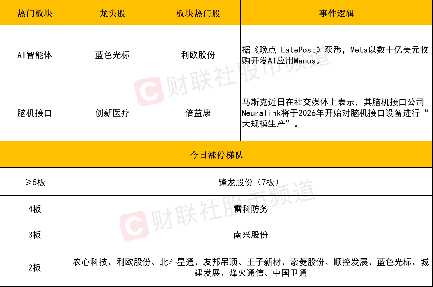 AI应用端延续强势,蓝色光标、卓易信息、麦澜德等涨停,南兴股份、岩山科技、东方通信、三七互娱、利欧股份等个股涨停。