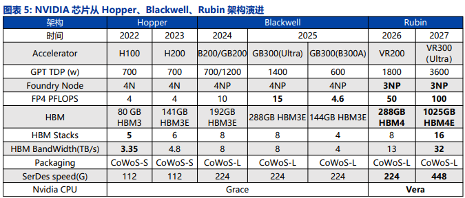 英伟达芯片从Hopper、Blackwell、Rubin架构演进 图源:爱建证券