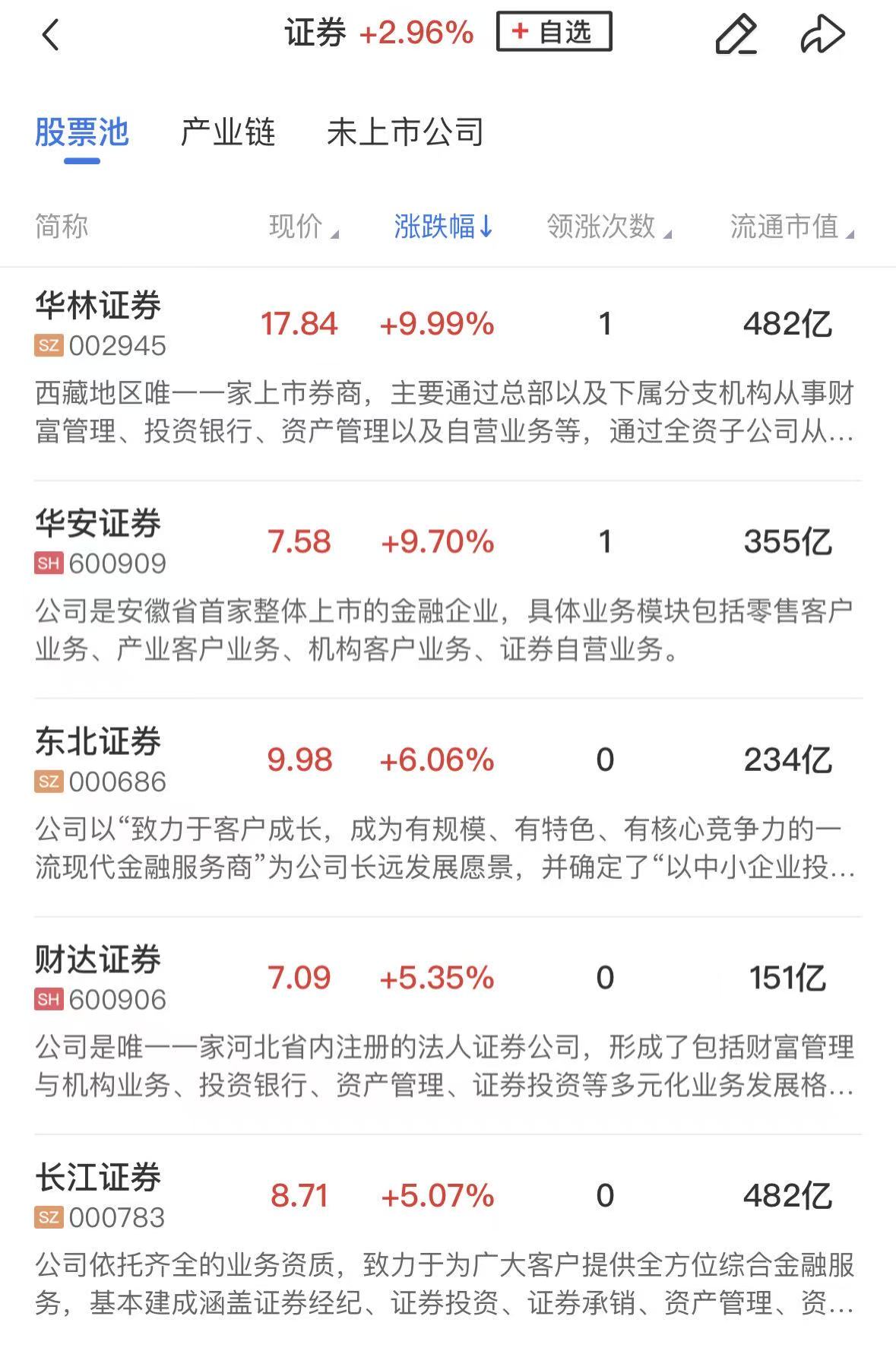 大金融板块全线爆发,保险股延续强势,新华保险、中国太保续创新高,证券股震荡走强,华林证券涨停,华安证券、东北证券、财达证券涨幅居前。