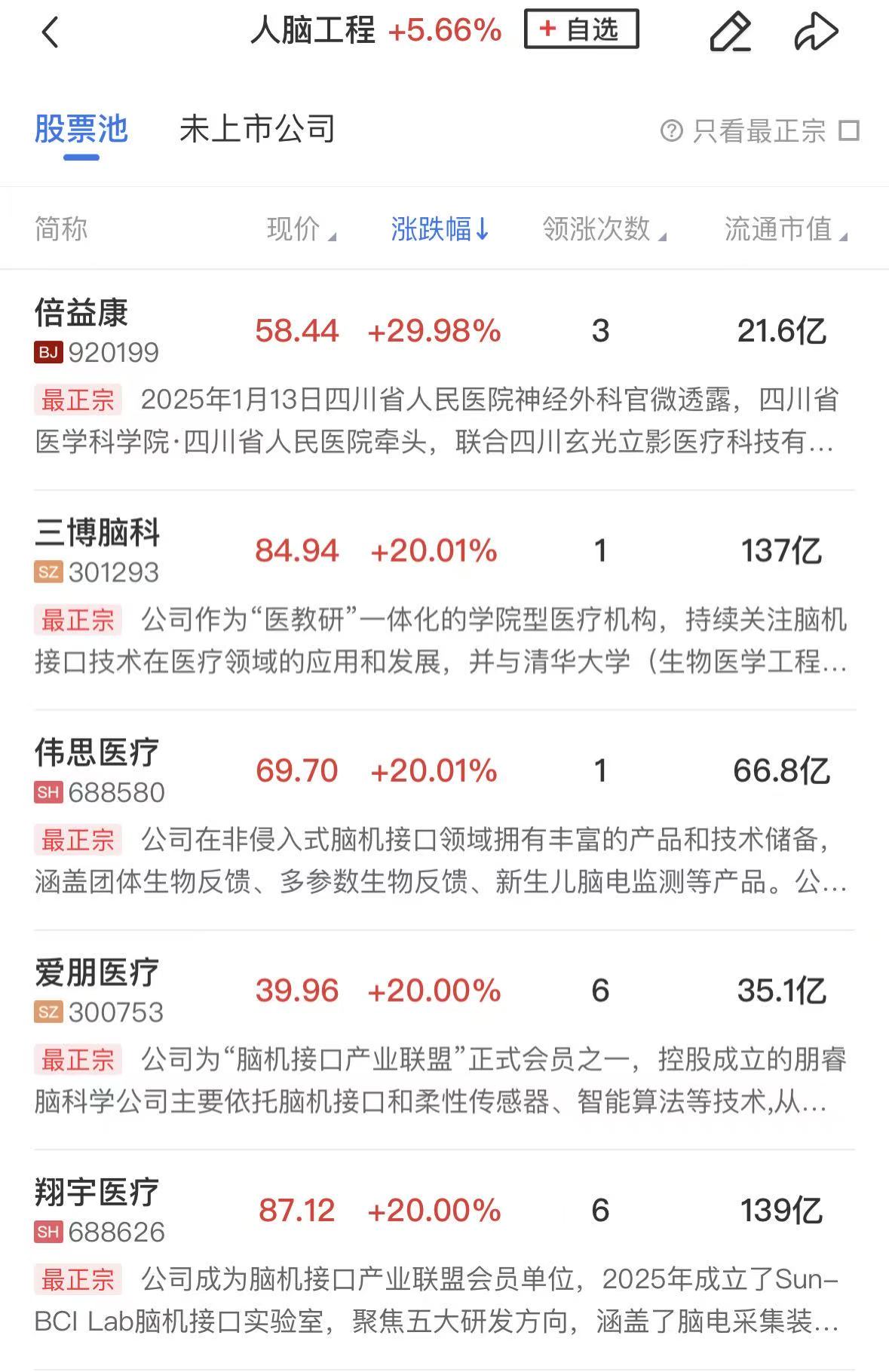 板块上,脑机接口延续强势,三博脑科、翔宇医疗、爱朋医疗、美好医疗、诚益通、塞力医疗、创新医疗等涨停,道氏技术、博拓生物等涨幅居前。