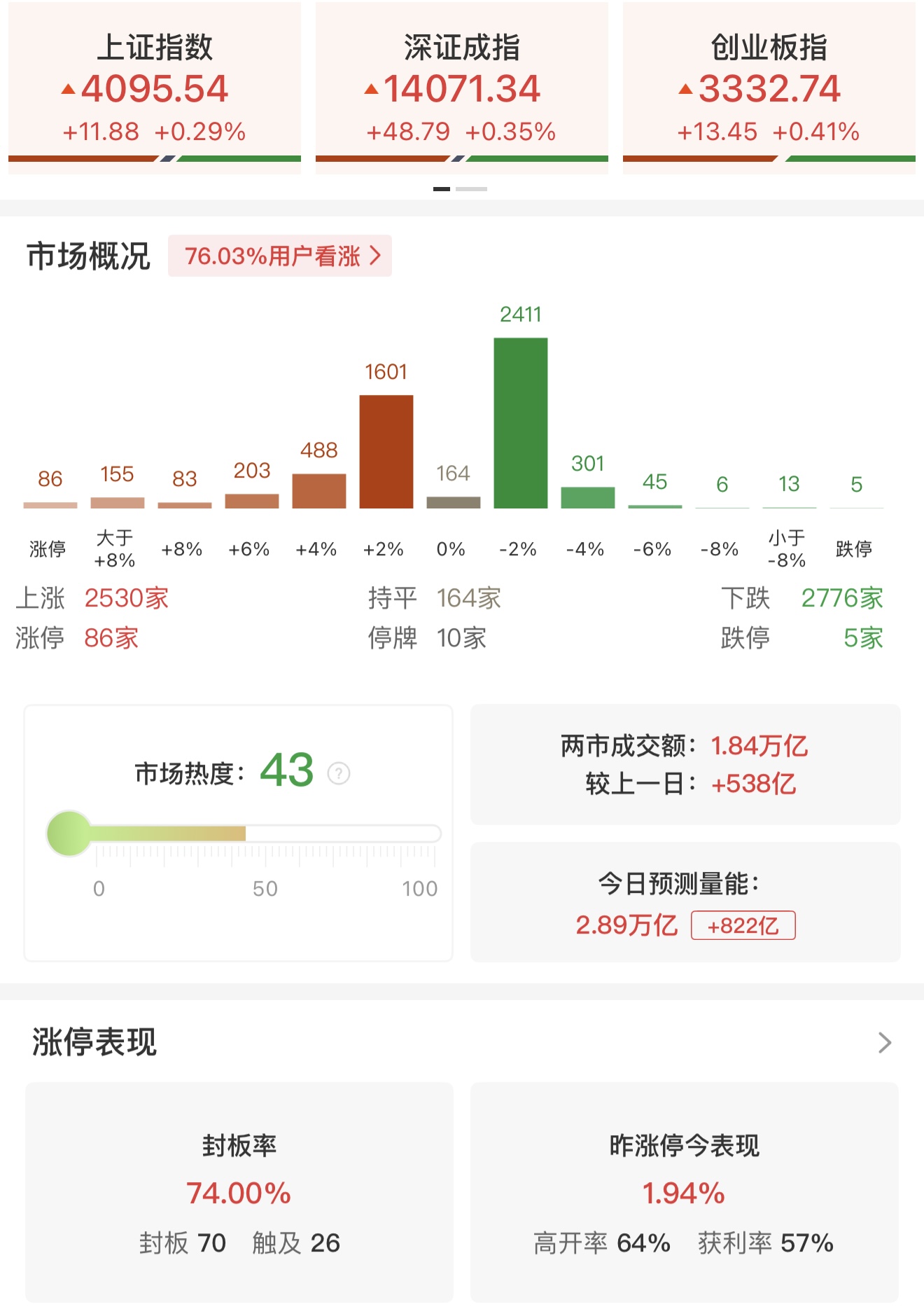 11:33:39【午评:沪指涨0.29%逼近4100点 两市半日成交1.84万亿】