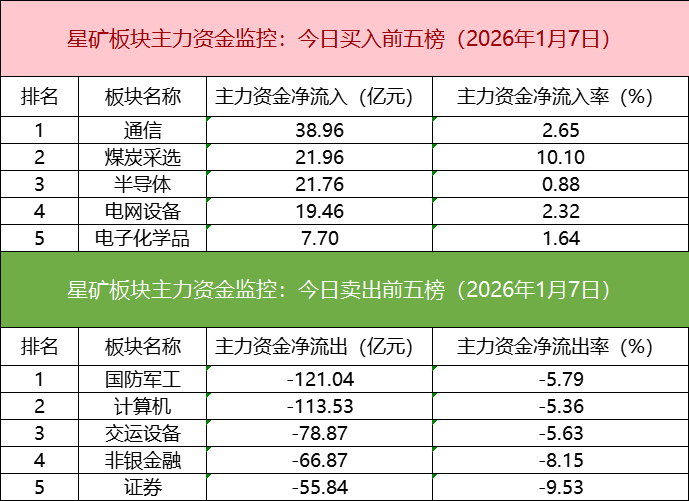 从主力板块资金监控数据来看,通信板块主力资金净流入居首。