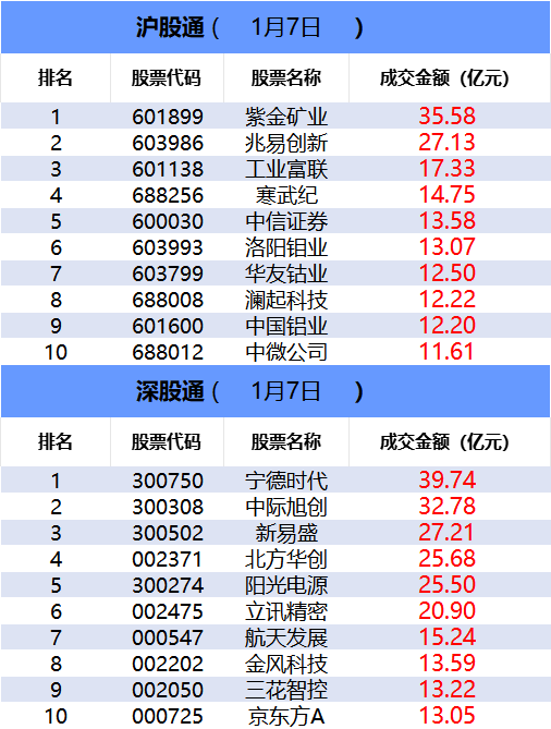 从沪股通前十大成交个股来看,紫金矿业位居首位;兆易创新和工业富联分居二、三位。