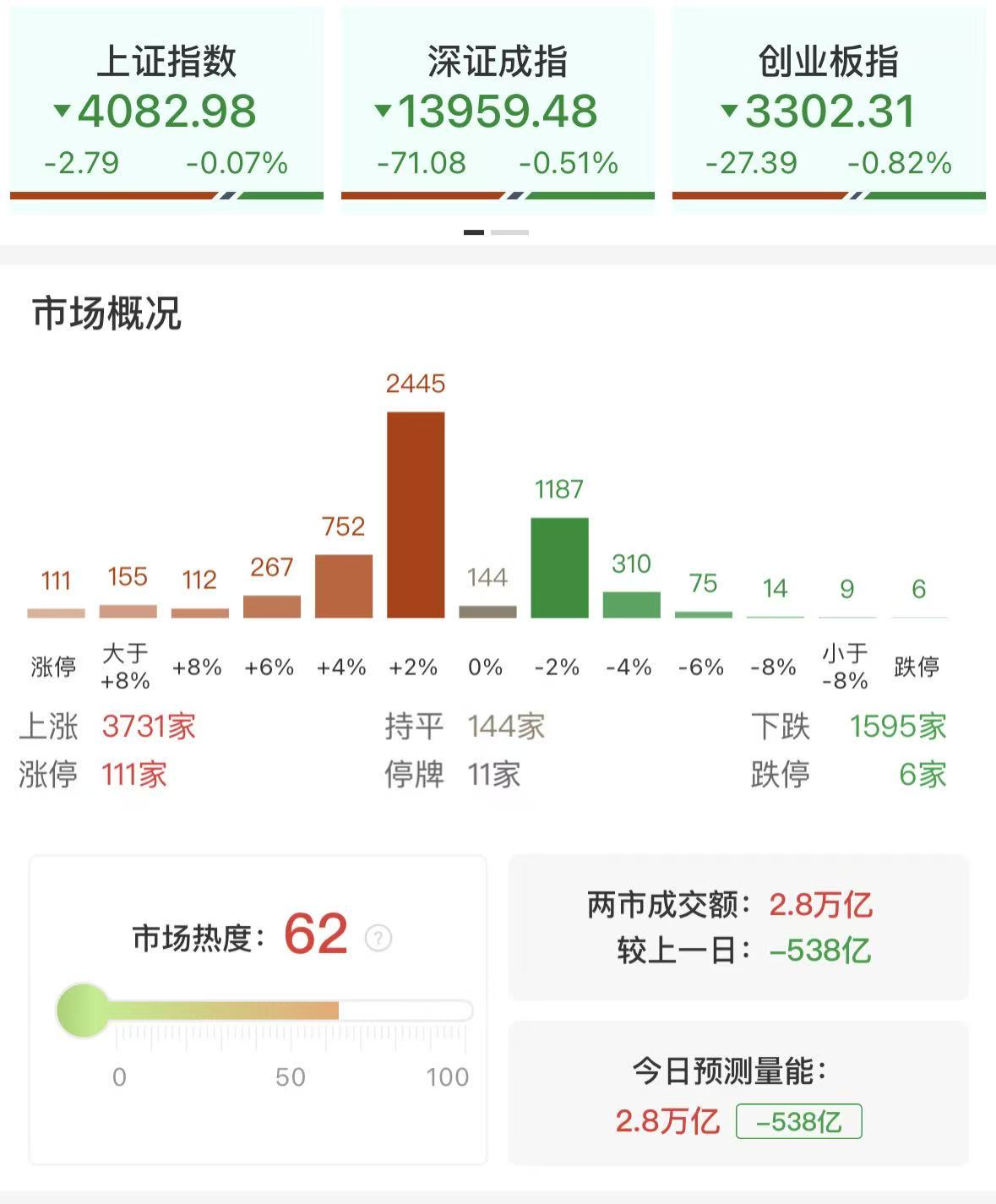 财联社1月8日讯,沪指窄幅震荡,创业板指盘中跌超1%。沪深两市成交额2.8万亿,较上一个交易日缩量538亿,成交额连续4个交易日超2.5万亿。盘面上,市场热点快速轮动,全市场超3700只个股上涨,其中111只个股涨停。从板块来看,商业航天概念集体爆发,二十余只成分股涨停,鲁信创投10天8板,金风科技3连板。脑机接口概念延续强势,创新医疗、普利特、南京熊猫4连板。可控核聚变概念表现活跃,中国一重、国机重装、中国核建2连板。AI应用概念走高,久其软件、宝信软件涨停。下跌方面,大金融、稀土永磁、有色金属等板块跌幅居前。其中证券方向集体下挫,华林证券跌停。截至收盘,沪指跌0.07%,深成指跌0.51%,创业板指跌0.82%。