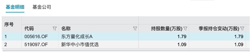 公募基金方面,东方量化成长、新华中小市值优选两只基金在2025年三季度一举将天普股份买为第一大重仓股。不过两只产品规模并不大,分别为1.24亿元、0.64亿元,因此持有并不多,持股数量仅为1.79万股、1.09万股,天普股份在2025年三季度涨幅达到468.92%,对基金净值增长起到了重要作用。
