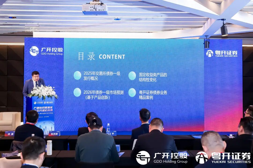 展望2026年,他认为围绕绿色金融、科技金融等“五篇大文章”的债券产品创新将迎来广阔空间,同时分享了粤开证券在绿色债券、低空经济科创可续期债券等领域打造的一系列标杆案例。