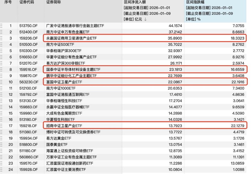 软件、传媒、航空卫星全线爆发,富国创业板软件ETF、华夏创业板软件ETF、南方创业板AIETF、招商软件龙头ETF、嘉实软件ETF、华泰柏瑞通用航空ETF、广发传媒ETF等基金涨幅均超10%。