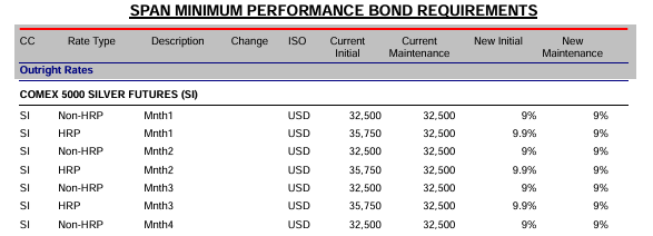 而在白银方面,此次调整前(固定金额),COMEX 5000 SILVER FUTURES近月合约保证金在过去一个月已先后经历了连续三次上调,最后一次调整下Non-HRP客户白银每手初始保证金为32500美元。