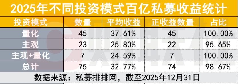 财联社1月15日讯(记者 闫军)私募基金在2025年取得发行与业绩双丰收,一方面是量化频频迎来爆款发行,百亿级别私募重返百家;另一方面,私募基金业绩亮眼,尤其是百亿私募领跑效应明显。近两天也是频频见到私募掌门人发朋友圈庆贺。