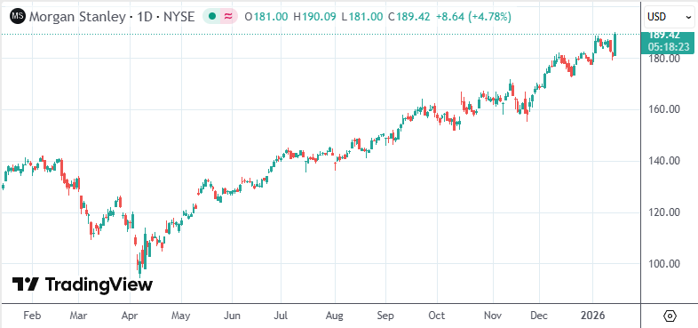 截至发稿,大摩股价早盘涨约5%。去年该股累涨超45%,跑赢美股三大指数。