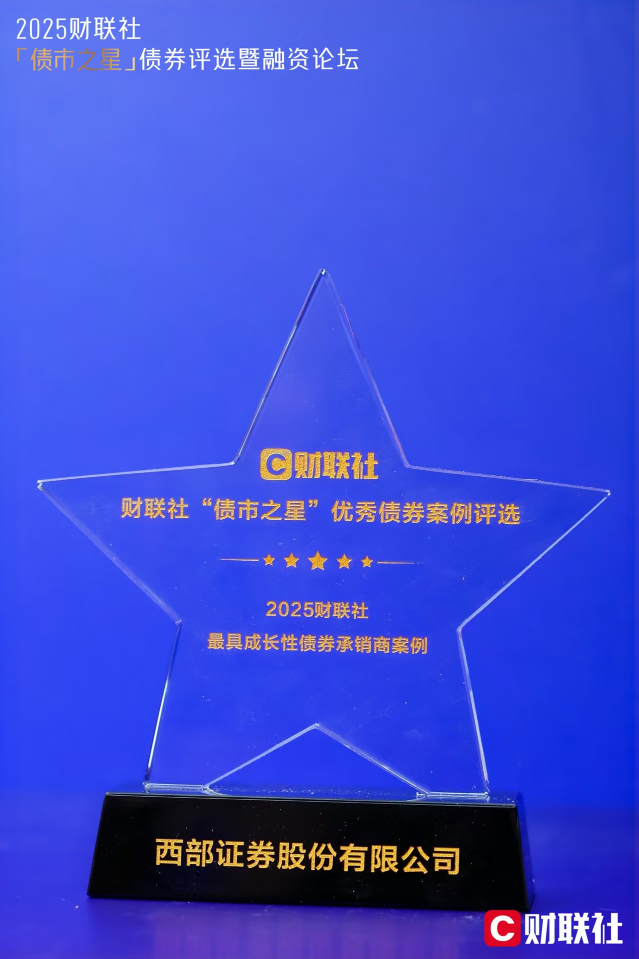 1月16日,由上海报业集团指导、财联社主办的“2025财联社债券评选暨融资论坛”在杭州成功举办。同期揭晓了2025财联社“债市之星”债券榜单,西部证券凭借债券业务的快速成长与卓越表现,荣获“2025财联社最具成长性债券承销商(券商类)”荣誉。该评选以其权威性、专业性和市场影响力,持续受到债券市场各方参与者的高度关注与认可。
