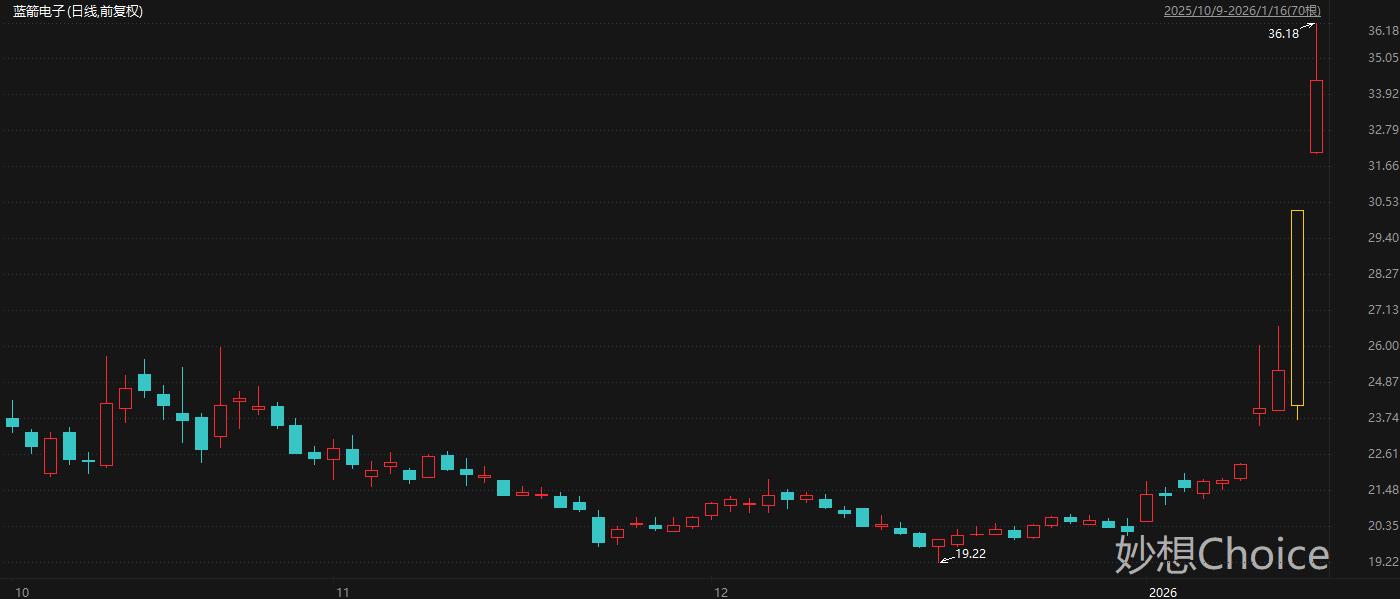 其中,拥有完整半导体封装测试技术的蓝箭电子1月12日公告称,公司拟以支付现金的方式收购转让方持有的成都芯翼不低于51%的股权,成都芯翼的整体估值暂定为不超过6.75亿元。通过此次并购整合,公司将达成从半导体封装测试领域向芯片设计产业链的战略性拓展,逐步构建起“芯片设计+半导体封装测试”相互促进发展的产业链格局。二级市场方面,蓝箭电子周四收盘20CM涨停,周五收涨超13%。