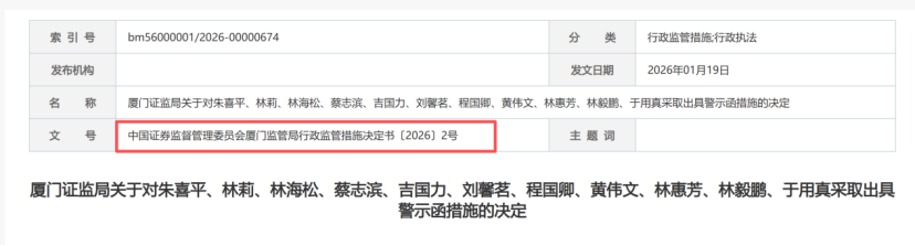 回溯监管流程,厦门证监局于2025年9月通过现场检查发现公司内部控制重大缺陷,随后下发责令改正通知,公司当月披露《前期会计差错更正公告》;2025年10月证监会正式立案,历经三个月调查后作出最终处罚决定。