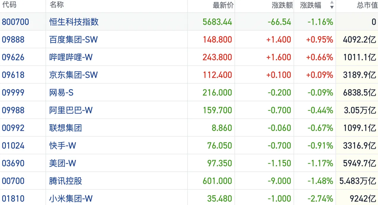 盘面上,今日大型科网股继续低迷表现,小米跌近3%再刷阶段新低,腾讯、美团跌超1%。