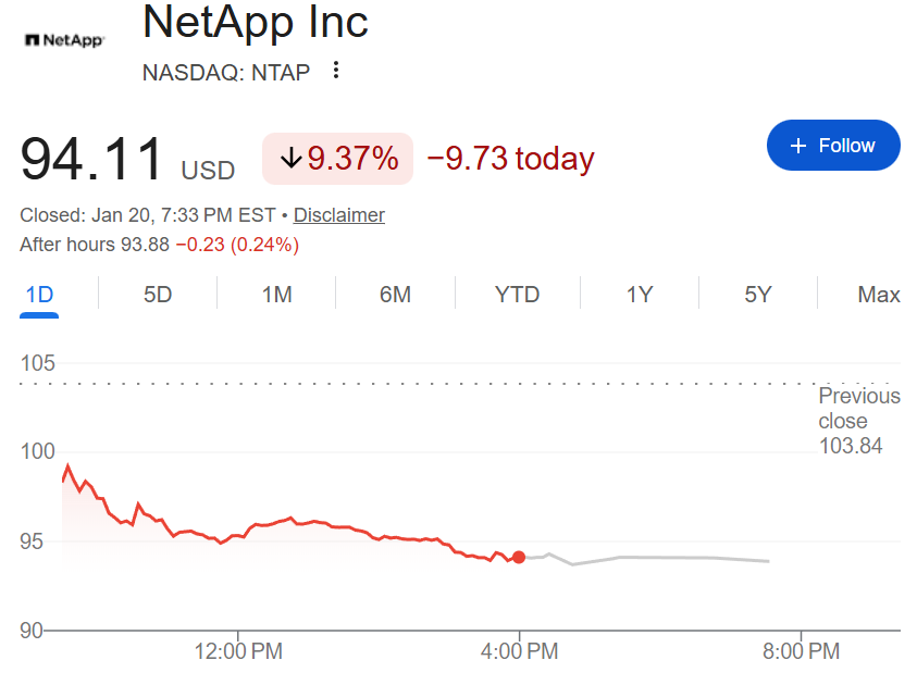 NetApp股价遭受暴击