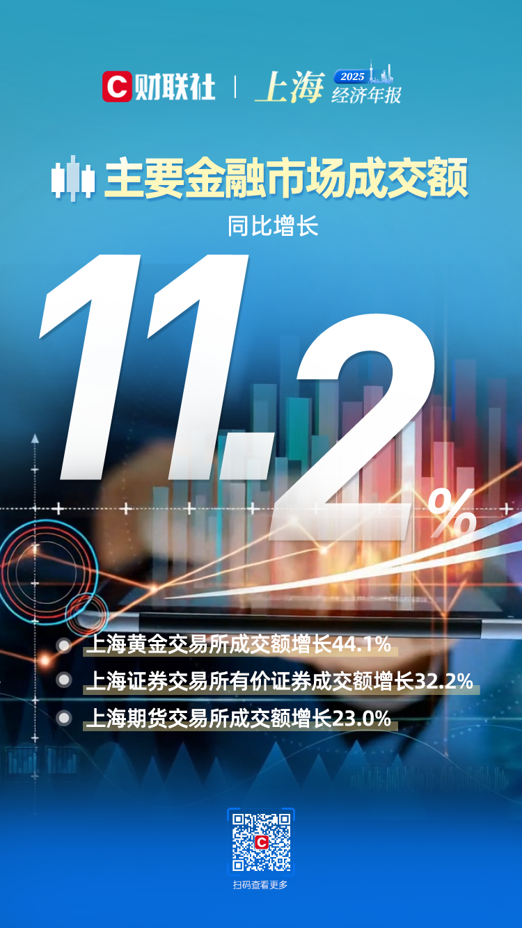 金融市场运行活跃。全市主要金融市场实现成交额4058.95万亿元,同比增长11.2%。其中,上海黄金交易所成交额增长44.1%,上海证券交易所有价证券成交额增长32.2%,上海期货交易所成交额增长23.0%。