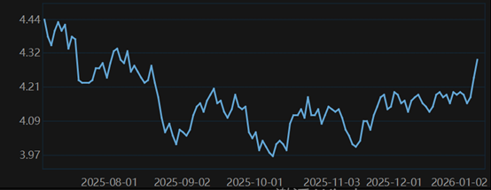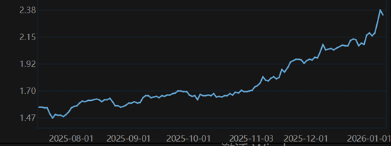 在去年12月中旬突破2.0%后,2026年以来,日本十年国债收益率上行近30BP至2.3750%。今日,日本十年国债收益率小幅回落至2.3350%。