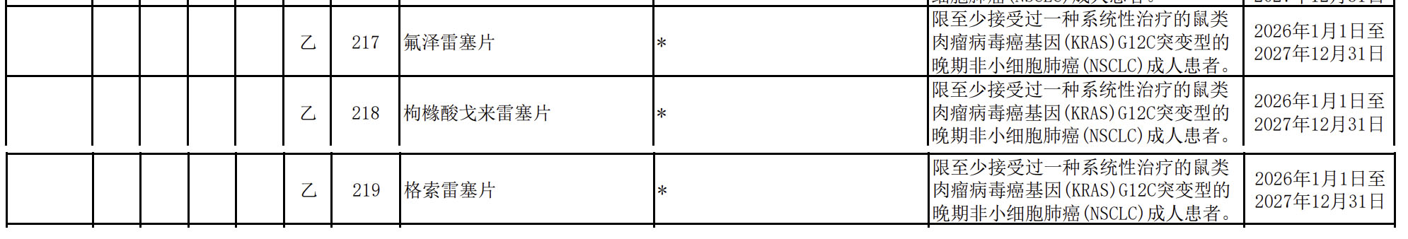不过,对于上述三款药物的医保报销,有着严格限定的适应症,即至少接受过一种系统性治疗的KRAS G12C突变型晚期非小细胞肺癌成人患者。