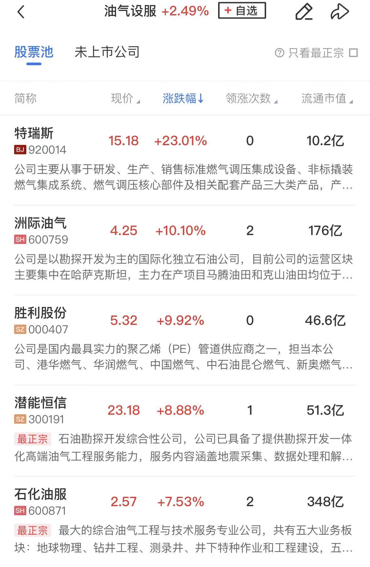 板块上,油气设服板块涨幅居前,洲际油气、蓝焰控股涨停,潜能恒信、石化油服、中曼石油、中国海油等涨幅居前。