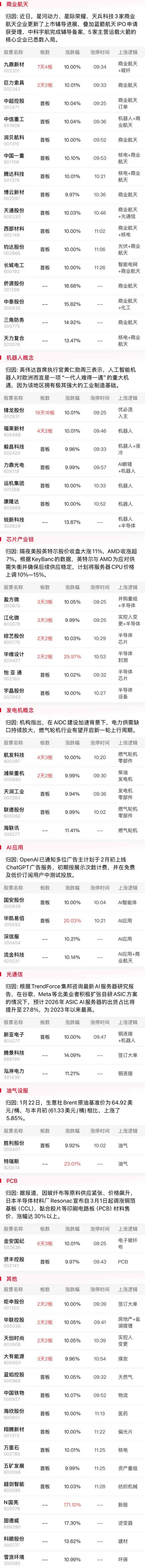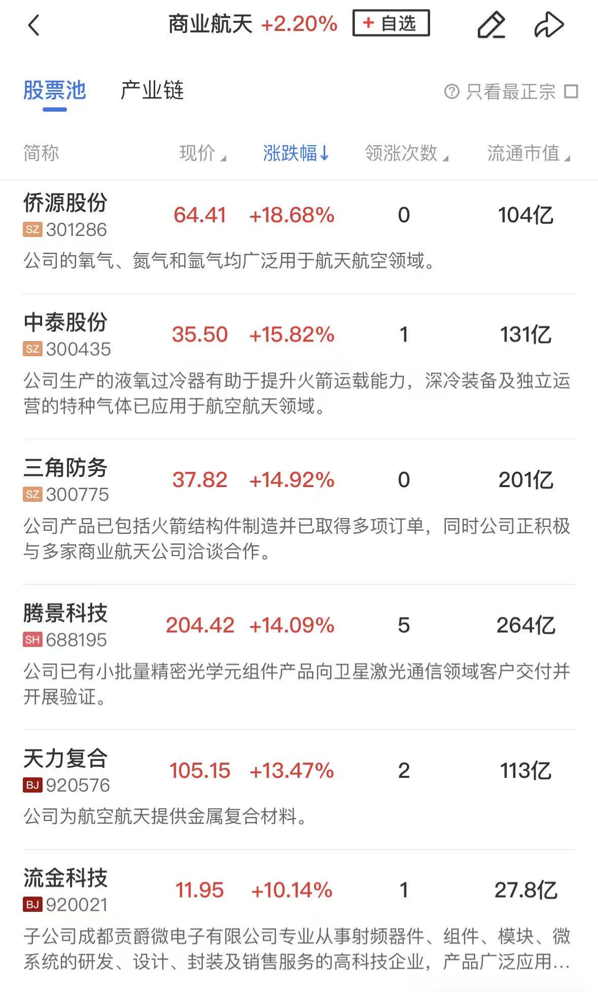 商业航天集体反弹,中超控股、天通股份、巨力索具、长城电工、西部材料等个股涨停,三角防务、科顺股份、信维通信、银河电子等个股涨幅居前。